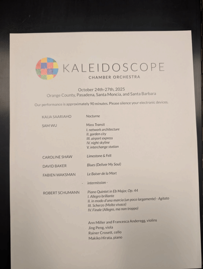 10月20日(月)から毎日9時半から5時半まで8時間リハーサルをし、金・土・日・月と4つの演奏会と収録セッションを南カリフォルニアの様々な場所で行いました。1200キロ近く運転し、寝食忘れて音楽に没頭して、2021年の食中毒以来の数値まで体重が減りました。演奏中の夢の様な至福も、涙を呑む瞬間も経験しました。