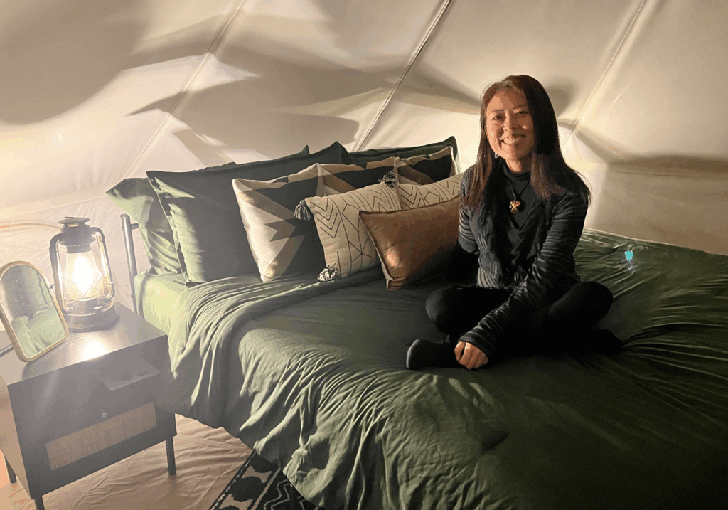 授賞式が終わってから野の君と車を転がすこと2時間半。途中で食料品を買い込みます。向かった先はマーク・トウェイン国立森林。二泊三日のグランピング。グランピングとは、「グラマラス(魅力的)」と「キャンピング(キャンプ)」を組み合わせた造語で、テント設営や食材準備といった手間を省き、ホテル並みの快適な設備とサービスを楽しみながら、自然を体験できる新しいキャンプスタイル。
